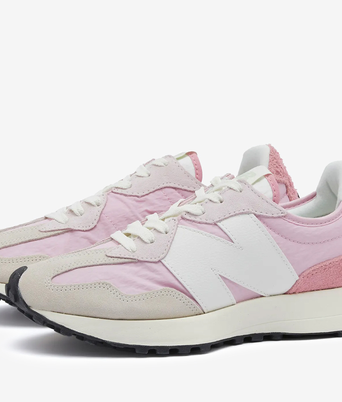 This sneaker from New Balance combines retro design with modern accents. It features a suede and textile upper in various shades of pink, complemented by white details. The profiled rubber sole provides good grip, while the lightweight EVA midsole offers optimum comfort. Perfect for everyday wear or sporting activities.