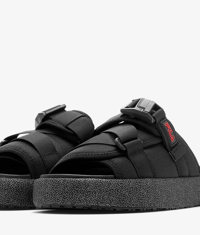 FILA lets you keep your style and brand loyalties in check whether you’re enjoying some pool time or just hanging at home. Modern and sporty, the Atlas slides come with a chunky platform sole, neoprene upper and a buckle fastening strap with the brand's logo.