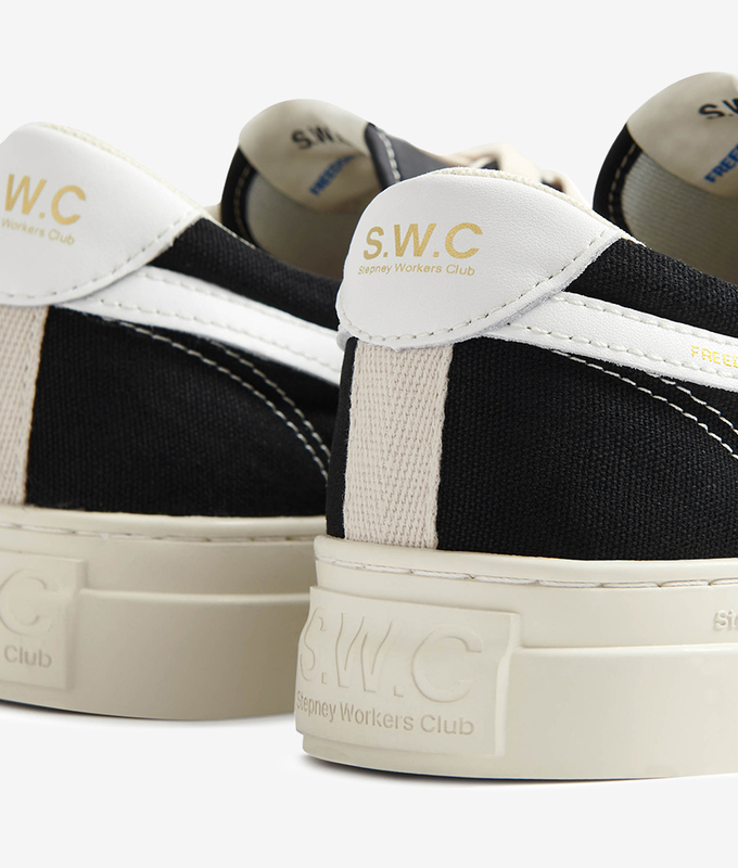 Constructed using traditional methods, the Dellow features a deconstructed upper, premium cushioned flexible sole and a concealed siped tread for improved grip. Its durable vulcanised rubber sole and high-wall foxings, make it a versatile and reliable sneaker. The ‘S-STRIKE’ features a trailing ‘S’ identifier panel on the quarters and heel spoiler in contrast colour leather. Both have neat gold-foil branding and small brand messages ‘FREEDOM OF SPORT’ (right shoe) and ‘FREEDOM OF THOUGHT’ (left shoe). Uppers are made from our new harder-wearing 12.Oz cotton canvas and the sidewall foxings have a new printed ‘S-STRIKE’ rubber heel patch.