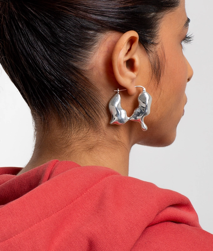VegNonVeg’s first-ever jewellery collection stays true to our Indian roots. With an overarching whimsical aesthetic, juxtaposition takes centre stage as we continue to explore the bridge between what is traditional and what is contemporary. For instance, we’ve taken the classic Jhumka and given it a more liquid, molten form to make a piece you could wear every day — with Indianwear or streetwear. Other pieces include an ear cuff, molten metal hoops and a line of essential hoops that are a must-have. Our jewellery is made of brass and finished with silver and gold plating.