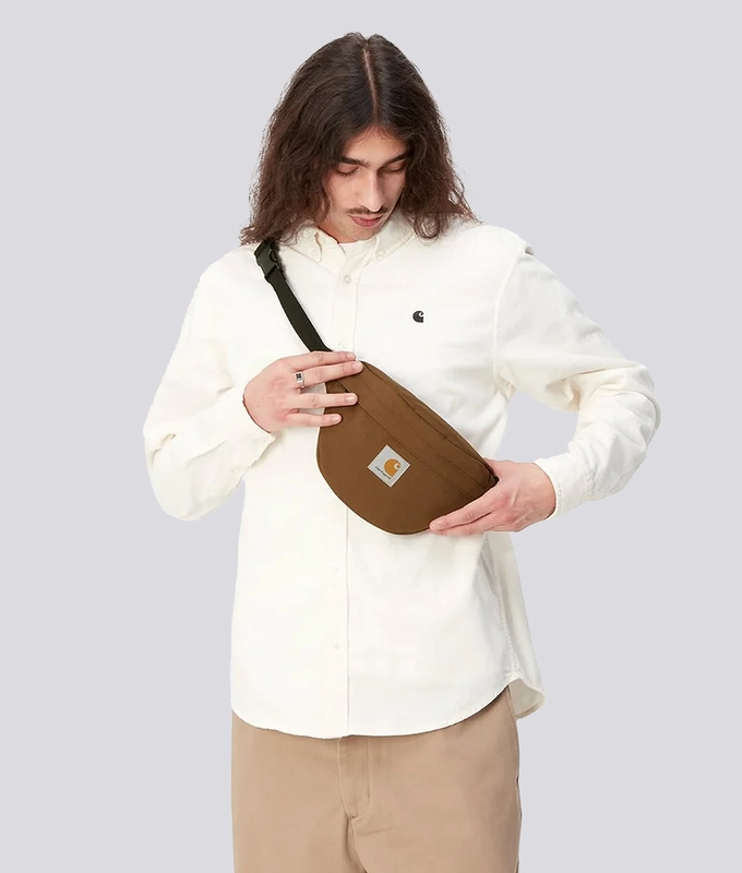 Constructed from a recycled polyester-blend canvas, the unlined Jake Hip Bag is a water-repellent style. It has one main opening with a concealed zip fastening, as well as a zipped pocket at the back.