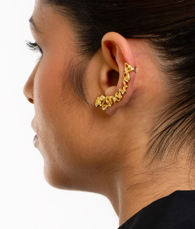 A unique, stand-out accessory that features VegNonVeg type in an abstract form, this ear cuff is set to become the focal point of any wardrobe.