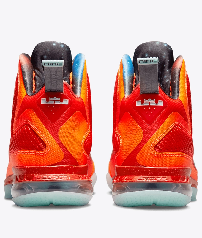 First appearing 10 years ago during NBA All-Star weekend, this LeBron 9 is now back with an even bigger bang in 2022. Inspired by the 2012 All-Star game host city of Orlando, Florida, and its Kennedy Space Center, the LeBron 9 'Big Bang' took inspiration from an intergalactic theme. On top of a glow-in-the-dark outsole, its vibrant Total Orange and Team Orange colourway with Metallic Silver details are reminiscent of old spacesuits and satellites. A special 'Big Bang' logo on the tongue rounds out an out-of-this-world style.