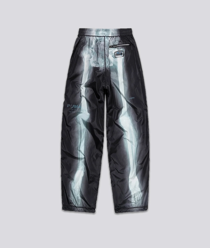 Water repellent nylon windcheater pants featuring a PUMA x ARIES branded X-ray all over print and collaboration branded silicone temple patch on the left leg. 100% Recycled Nylon.
