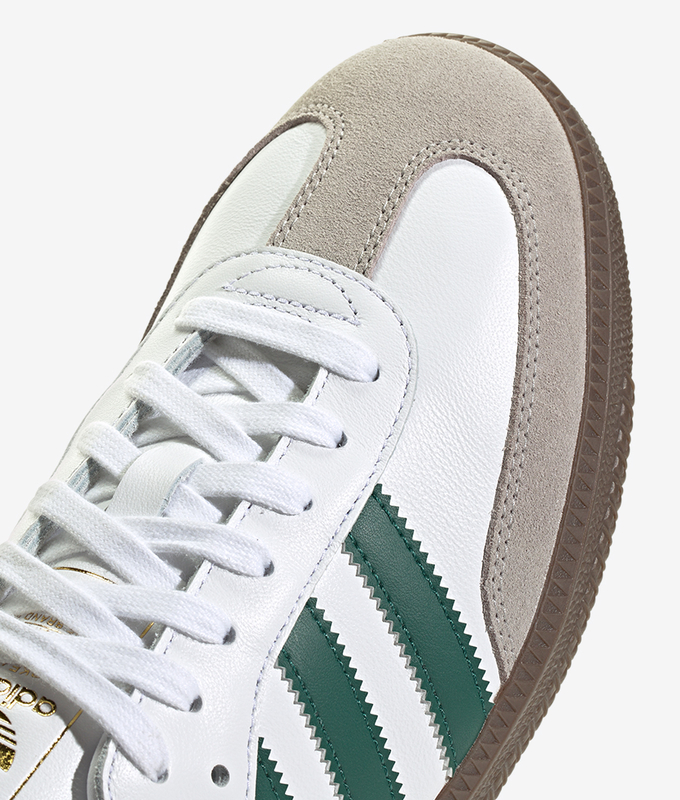Born on the pitch, the Samba is a timeless icon of street style. This silhouette stays true to its legacy with a tasteful, low-profile, soft leather upper, suede overlays and gum sole, making it a staple in everyone's closet - on and off the pitch.