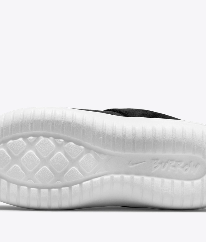 KEEP IT COZY. There's nothing like cozying up to a campfire. Nothing like adventure. But also, there's nothing like the comfort of home. The Nike Burrow lets you bridge worlds. Slip them on and get lounging or step out of the tent and enjoy the fresh mountain air. Its fleece-like lining helps keep you warm. The marshmallow soft foam midsole/outsole with grippy traction pattern adds spring to your step.