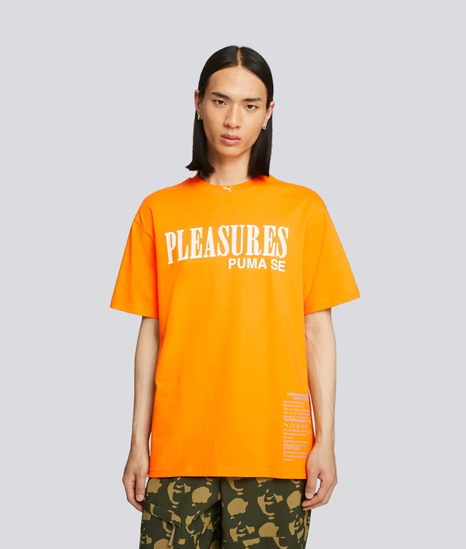 The debut of PUMA x PLEASURES. Streetwear brand PLEASURES was founded in Los Angeles in 2015 and they're known for their punk and grunge take on contemporary fashion. This season, styles receive a Y2K aesthetic that's all about the technical details. This tee has a co-branded graphic on the front to fit the vibe.